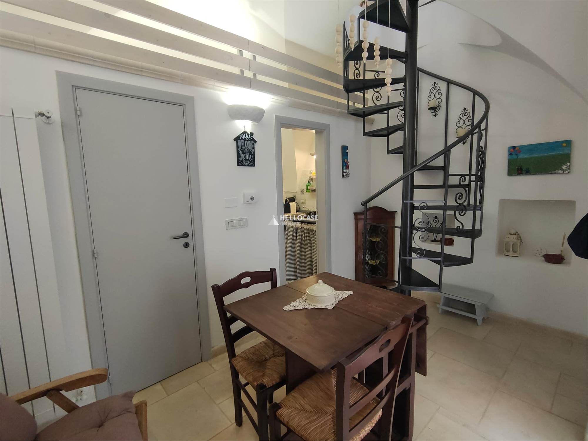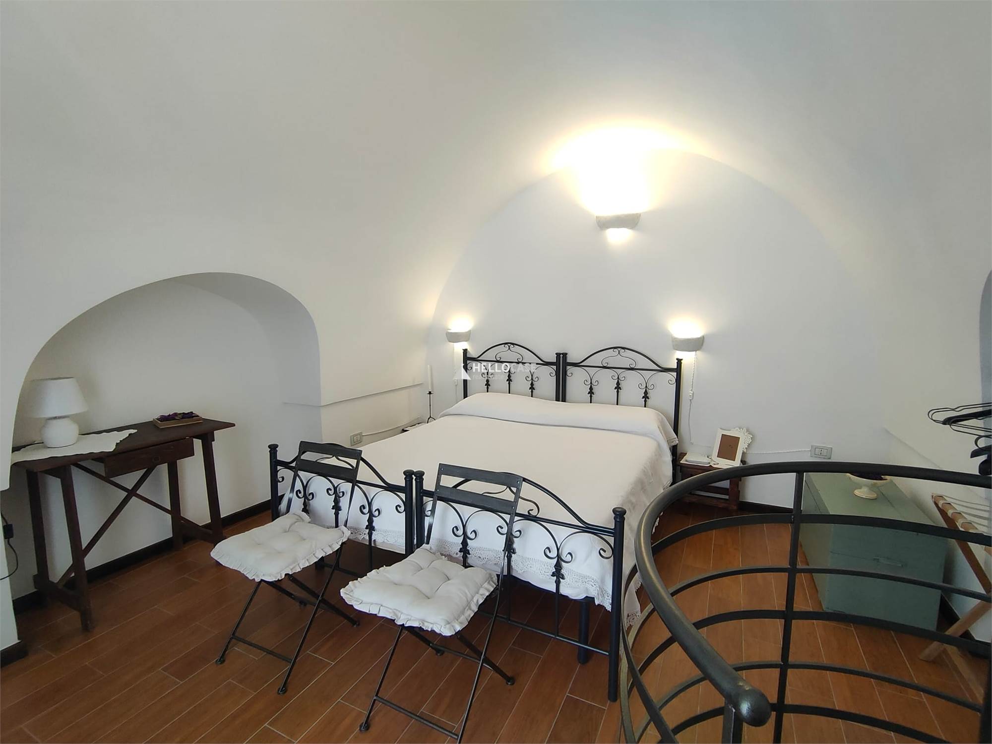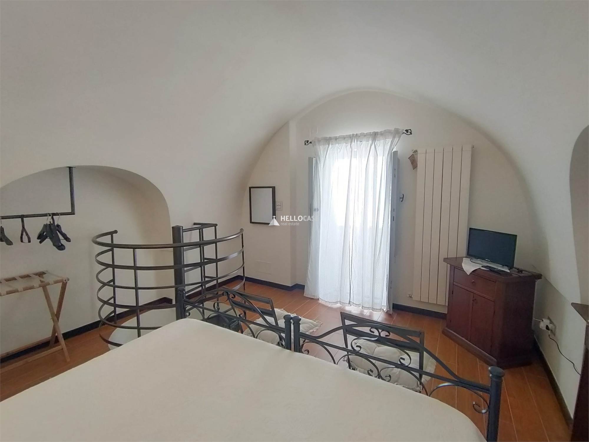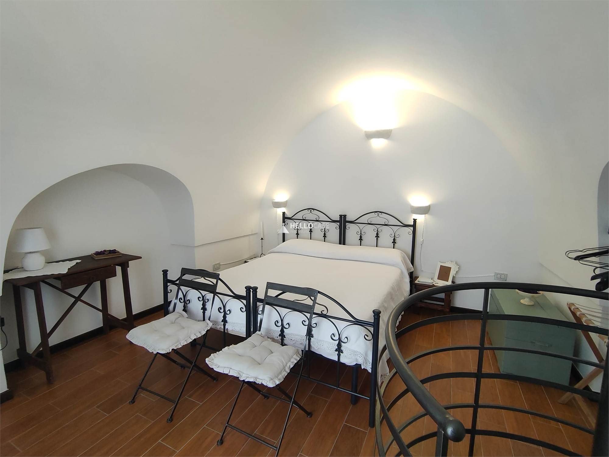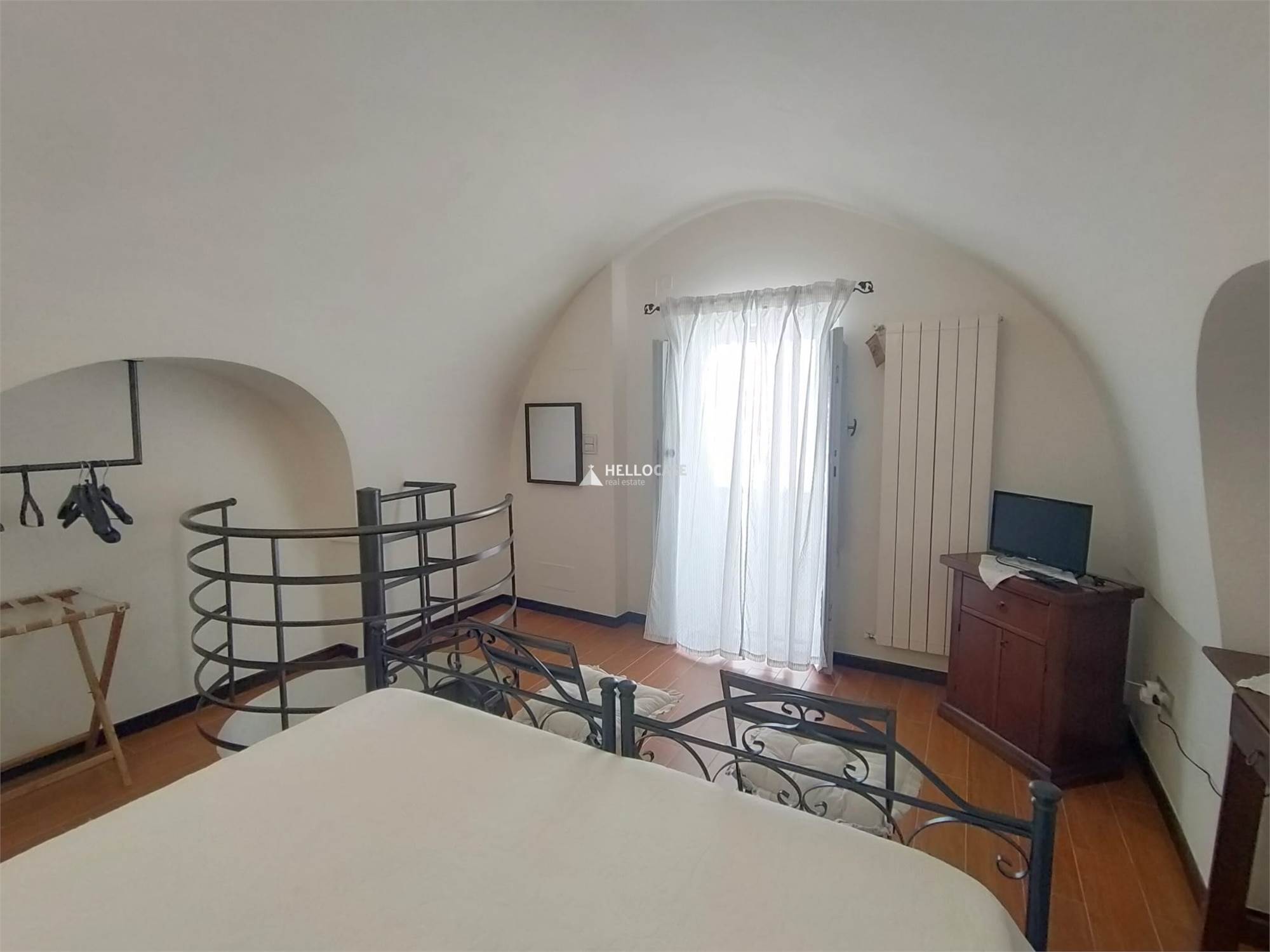 Going up to the first floor via a comfortable spiral staircase, you discover the bedroom, a true haven of tranquility. The room is spacious and bright, with access to a characteristic stone balcony from which you can enjoy a breathtaking view of the alleys and rooftops of the historic center