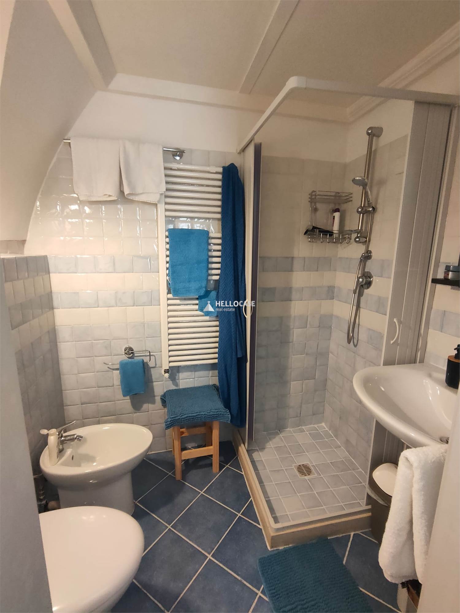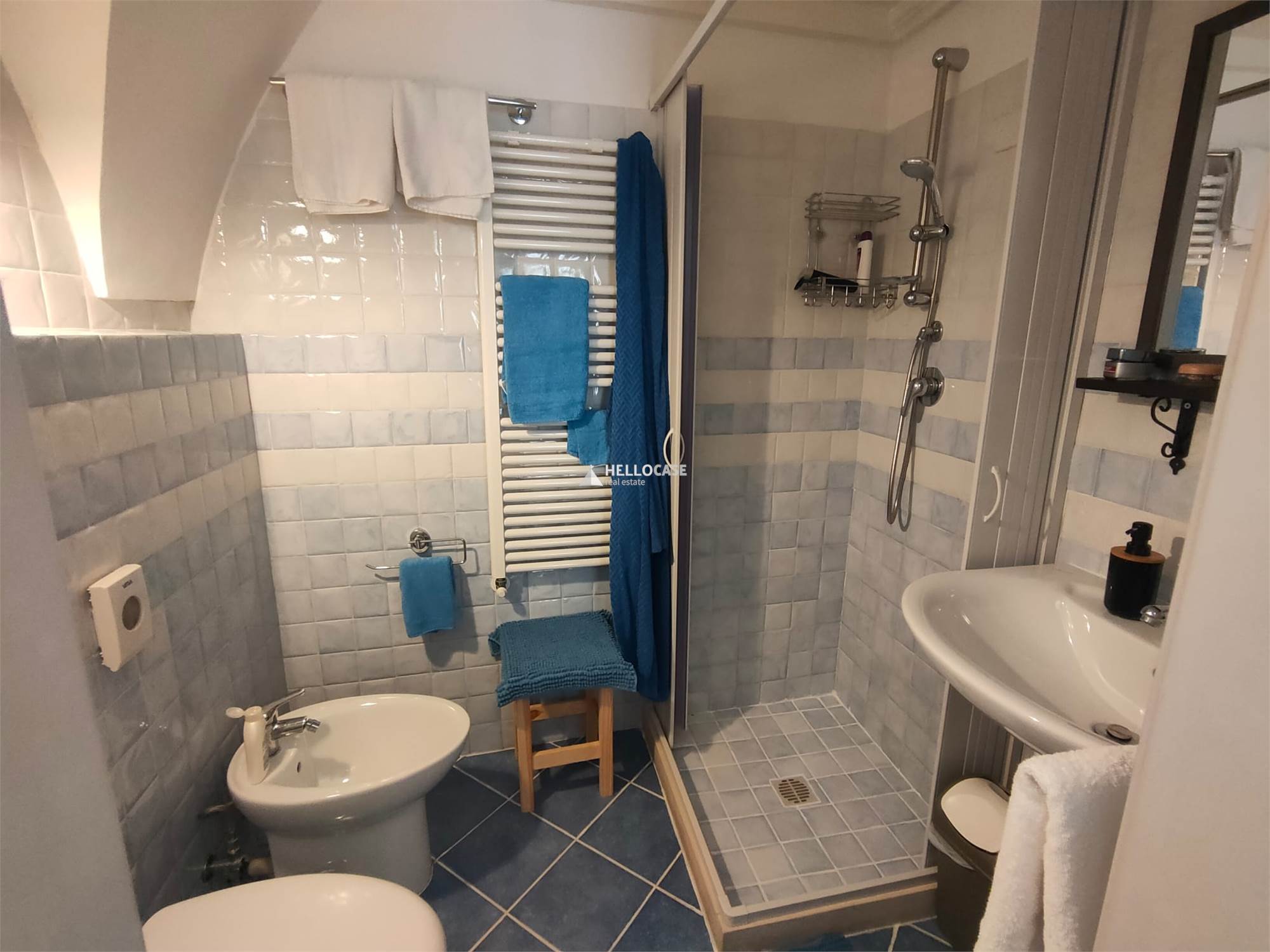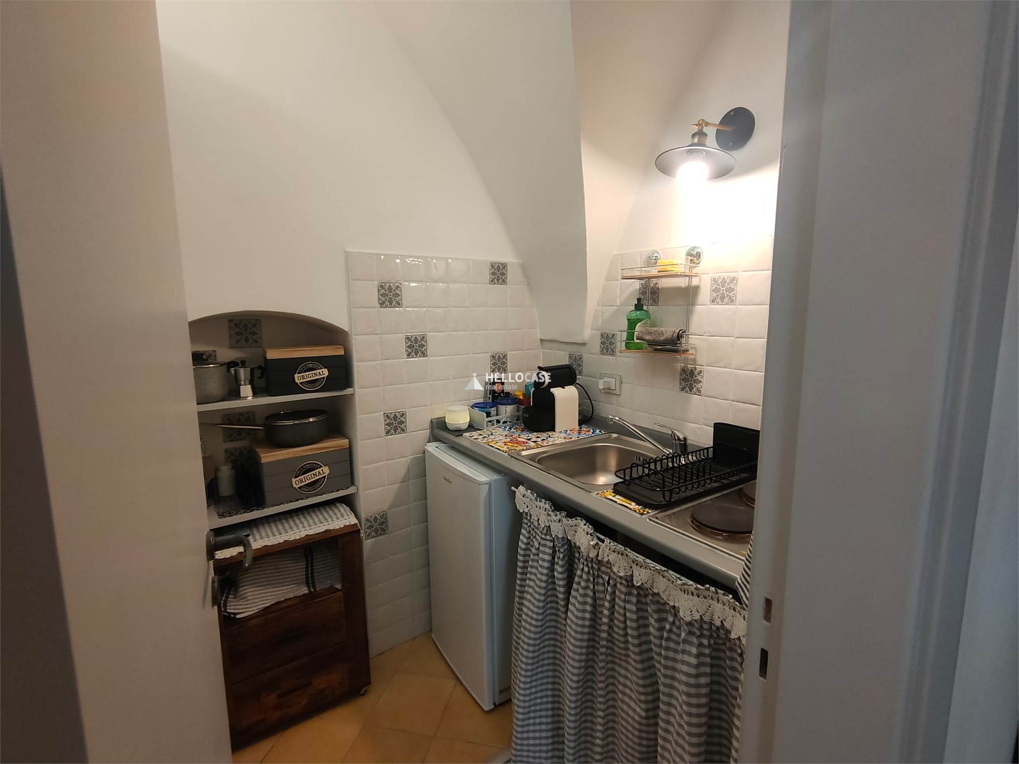 Upon entering, you are welcomed into a small but cozy dining area, perfect for intimate dinners or relaxing breakfasts. The adjoining kitchenette, though compact, has been finely furnished and equipped to meet all your culinary needs. This level is completed by a modernly renovated bathroom, where every detail has been carefully curated.