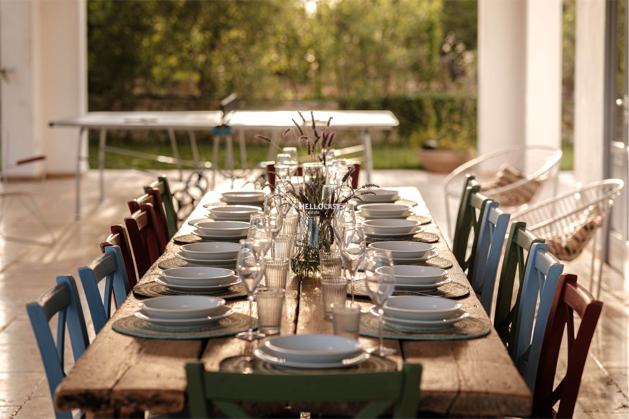 Il giardino verde e il prato inglese presentano arredi e dondoli di particolare pregio, di provenienza thailandese.