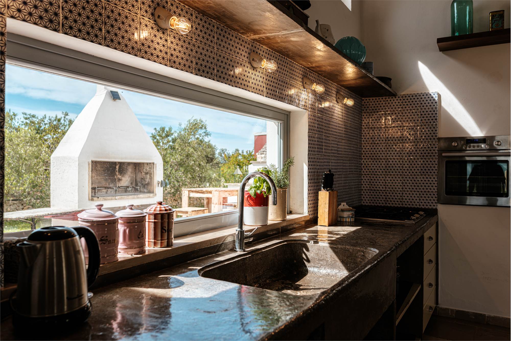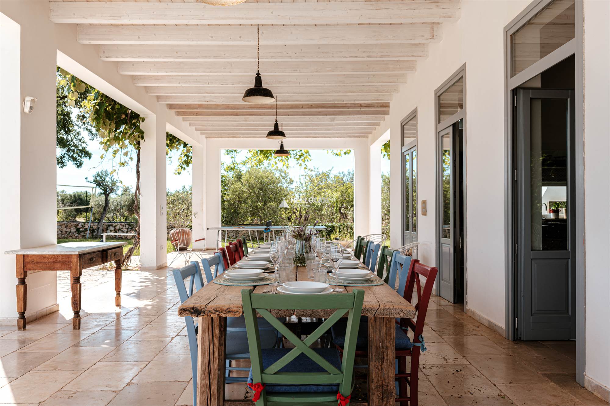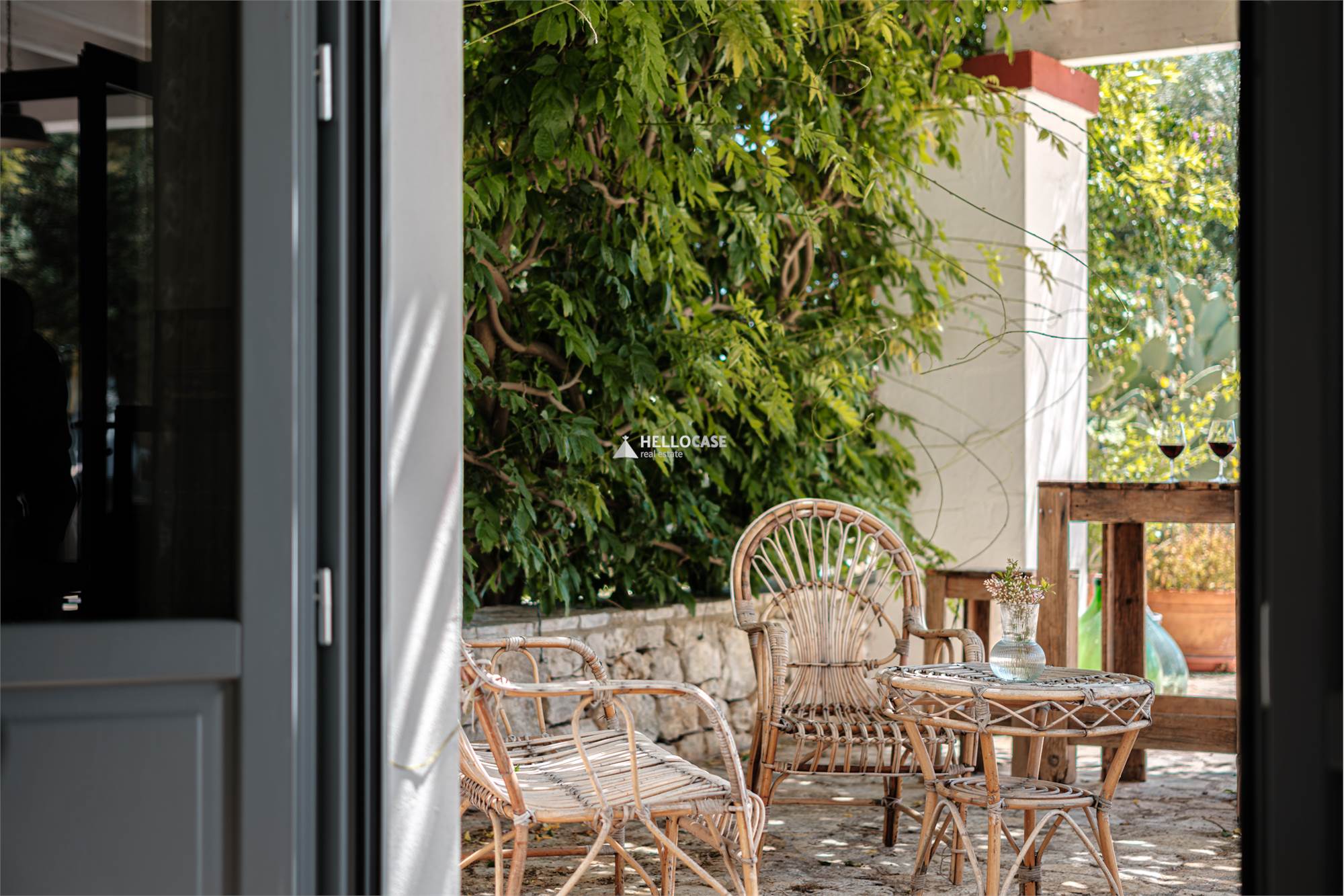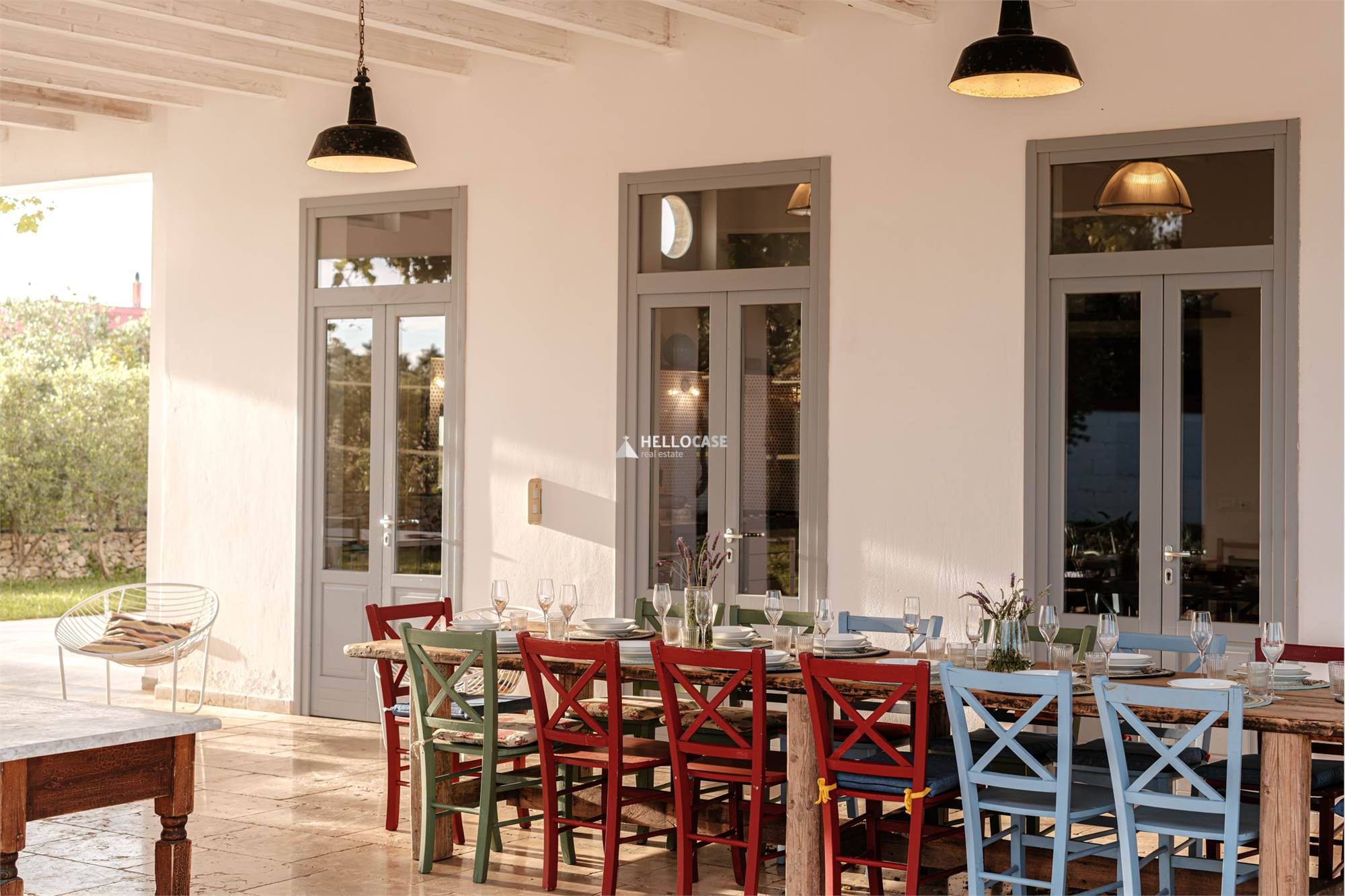 Tra gli arredi in stile Rimini anni '70 ed autentici capolavori thailandesi spiccano le varie zone ombra/relax.