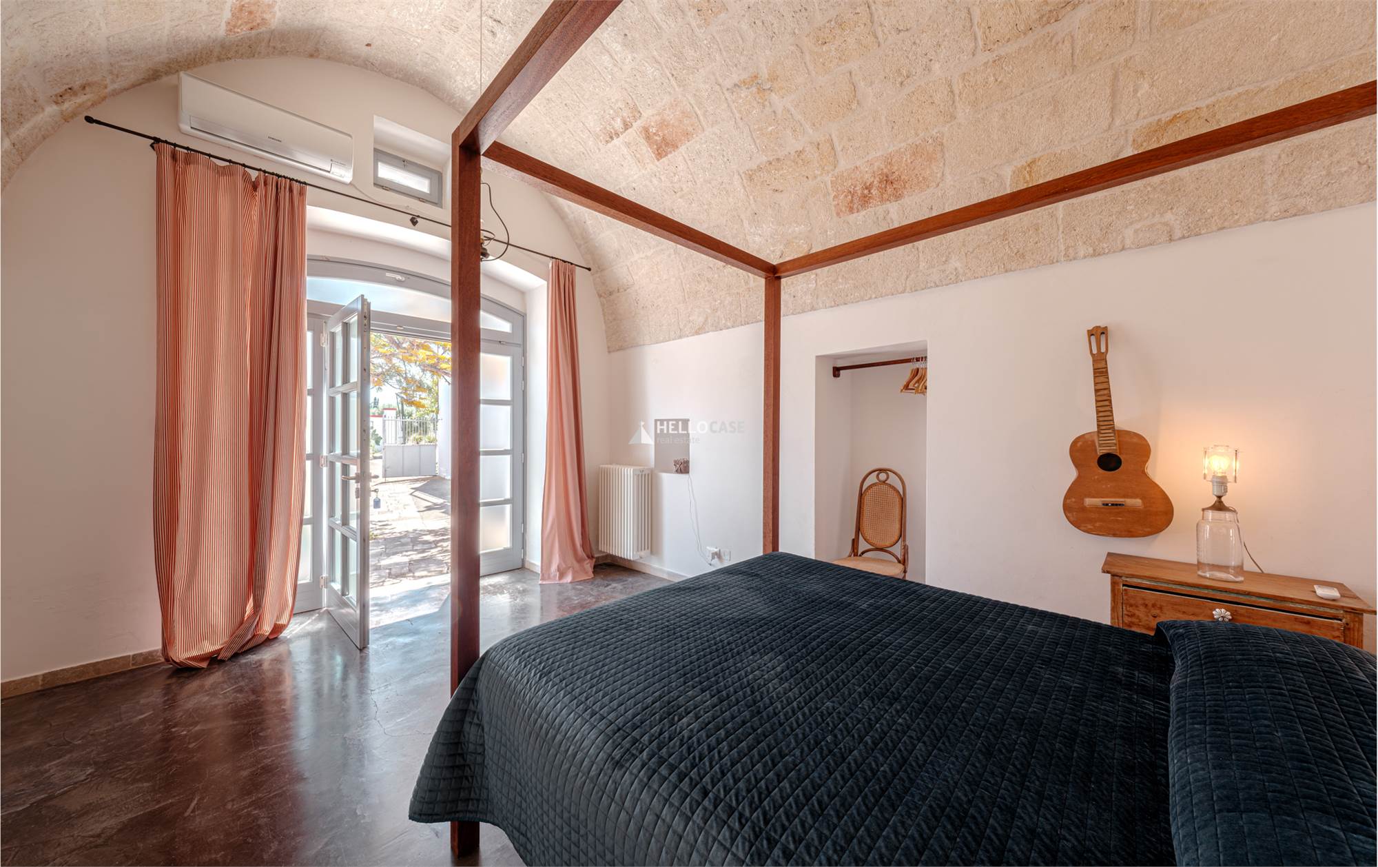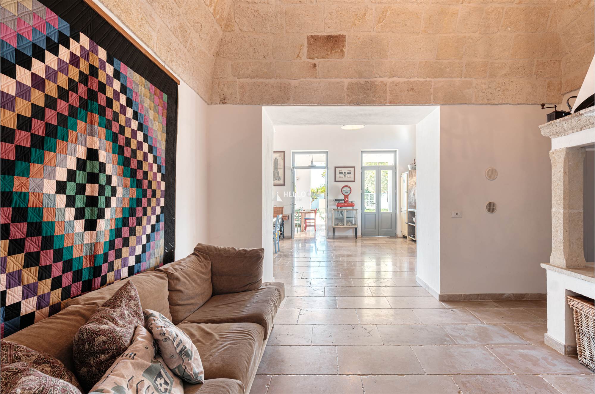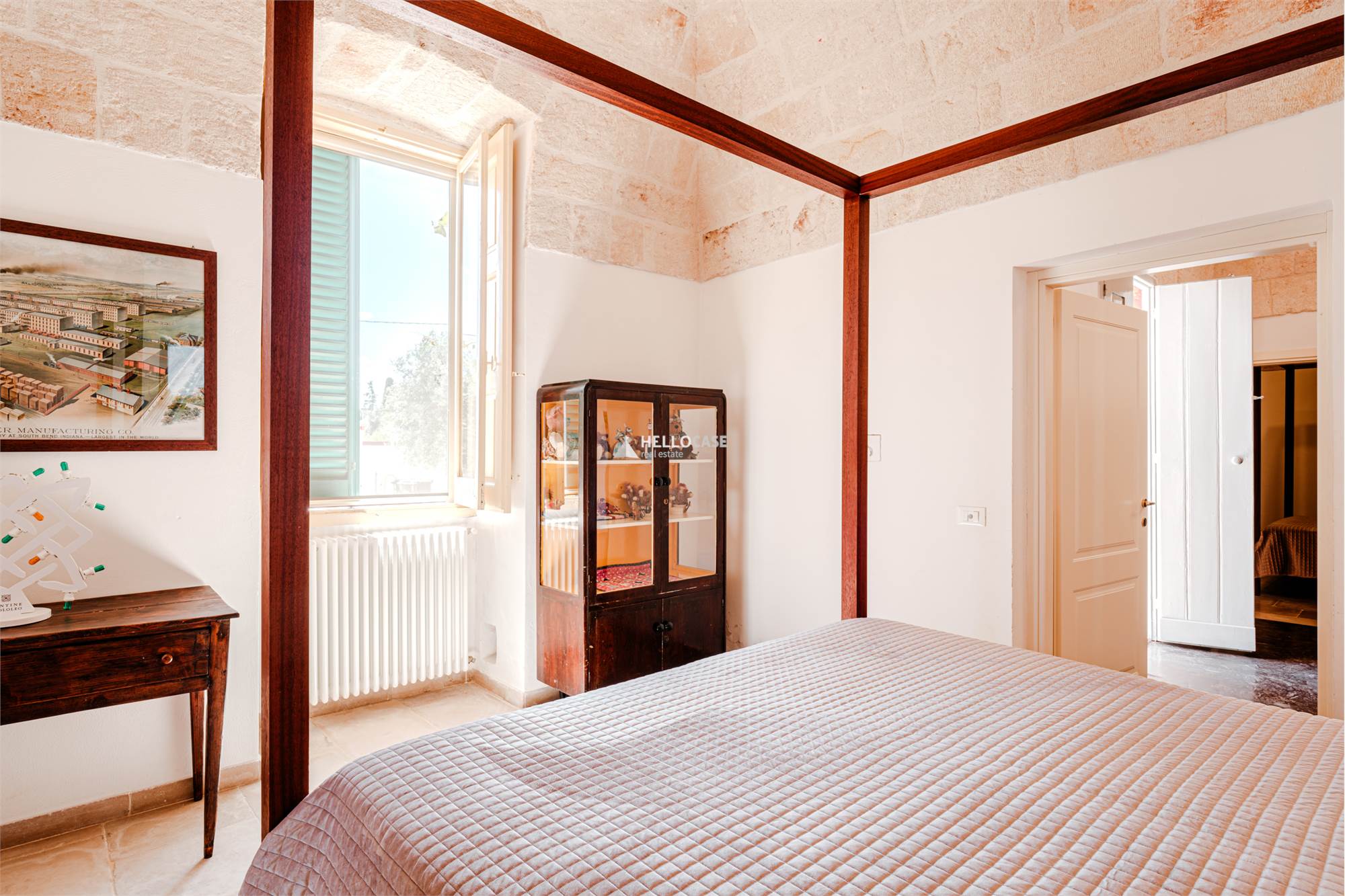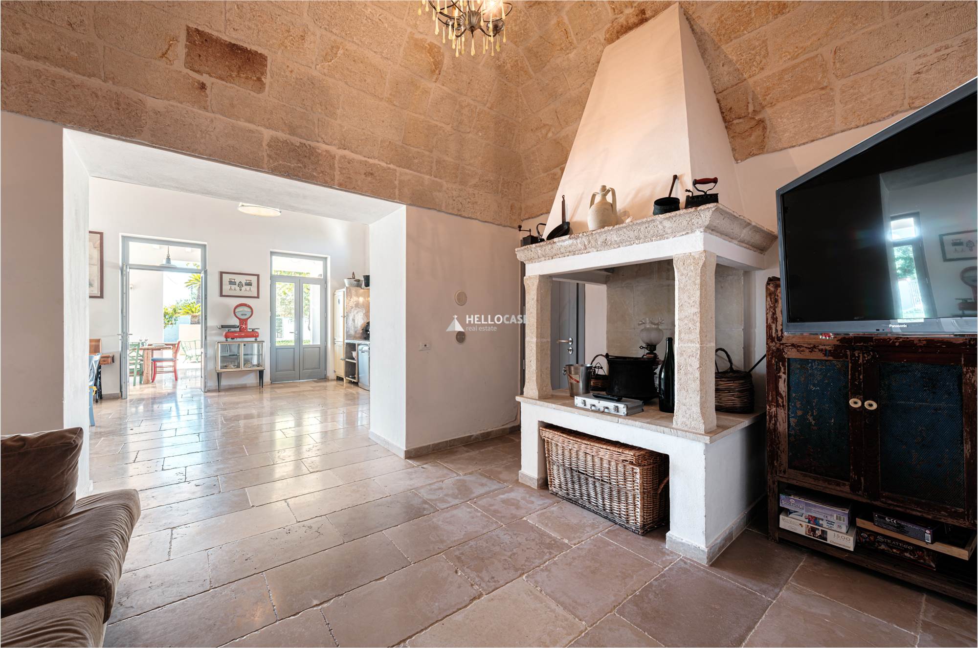 Il Corpo Centrale - Villa Padronale, è composta da una zona living/pranzo abitabile con cucina e camino, due camere da letto matrimoniali e un bagno con vasca vintage,